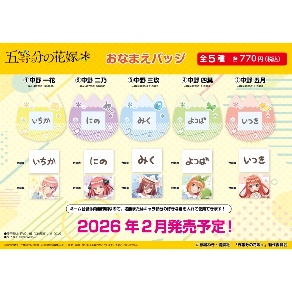 五等分の花嫁* おなまえバッジ /(4)中野 四葉
