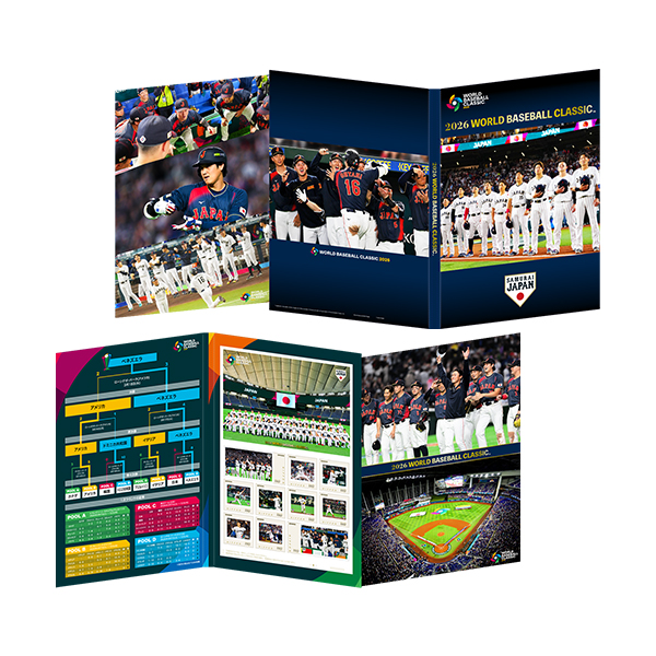 本商品は、2026 WORLD BASEBALL CLASSIC で活躍した選手の感動の名シーンをフレーム切手・ポストカード・プレミアムホルダーに収録した、野球ファン必携の記念商品です。