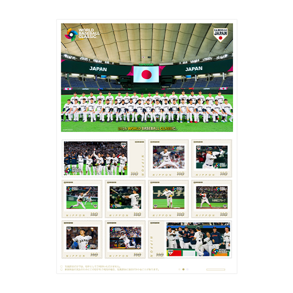 この歴史的大会を記念し、「2026 WORLD BASEBALL CLASSIC 侍ジャパン プレミアムフレーム切手セット」の発売が決定しました。